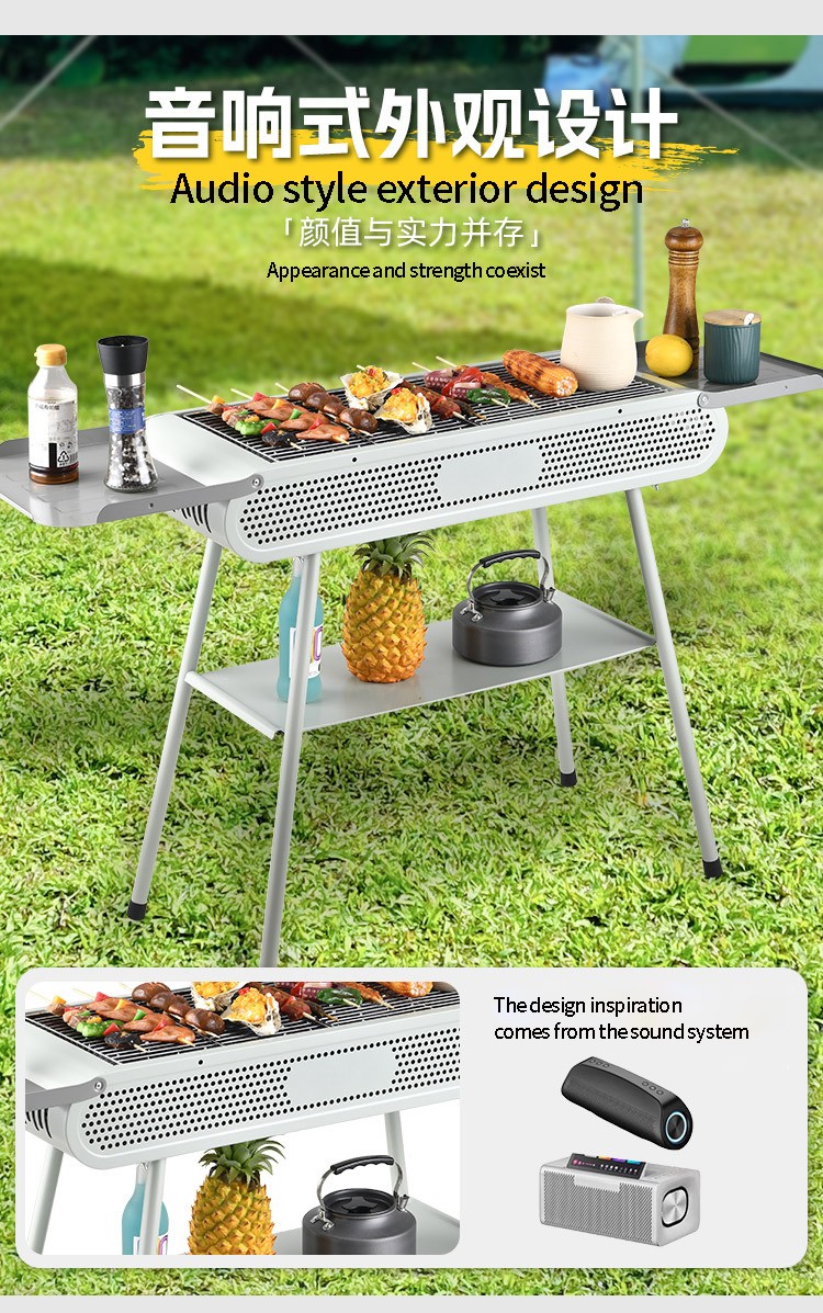 参考音响外观模式从而设计出来本款烧烤炉,更漂亮的外观使得在烧烤的时候有更好的心情
